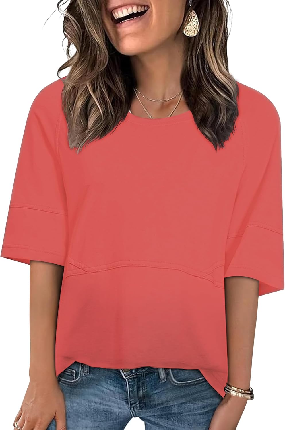 LOZ Womens Boho T Shirts Loose Fit Crewneck 3/4 Sleeve Tops Summer Casual Blouse Flowy 2025 Basic Tee