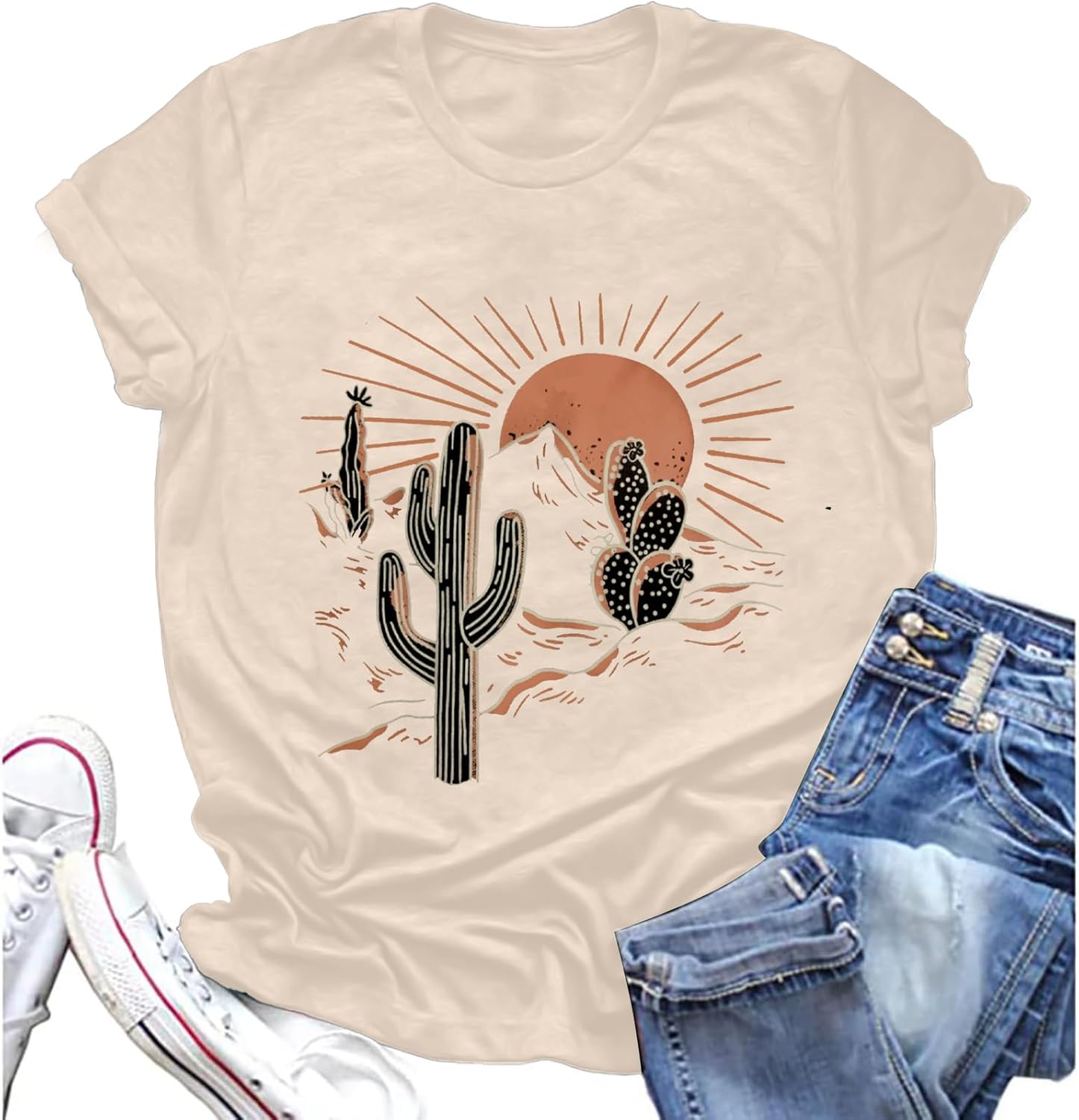 Women Adventure Shirts Retro Desert Sunrise T-Shirt Funny Hike Mountain Nature Travel Graphic Workout Tees Tops