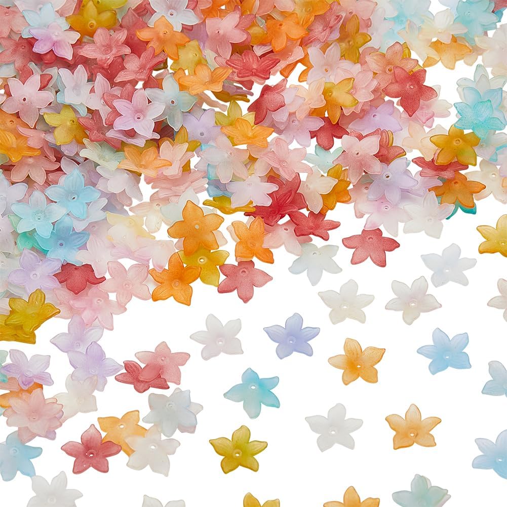 500Pcs Acrylic Flower Beads Floral Bead Caps Bulk Colorful Frosted Matte Lily 5-Petal Flower Transparent Spacer Bead Caps for Jewelry Making Bracelets Necklaces Earrings Supplies Adults
