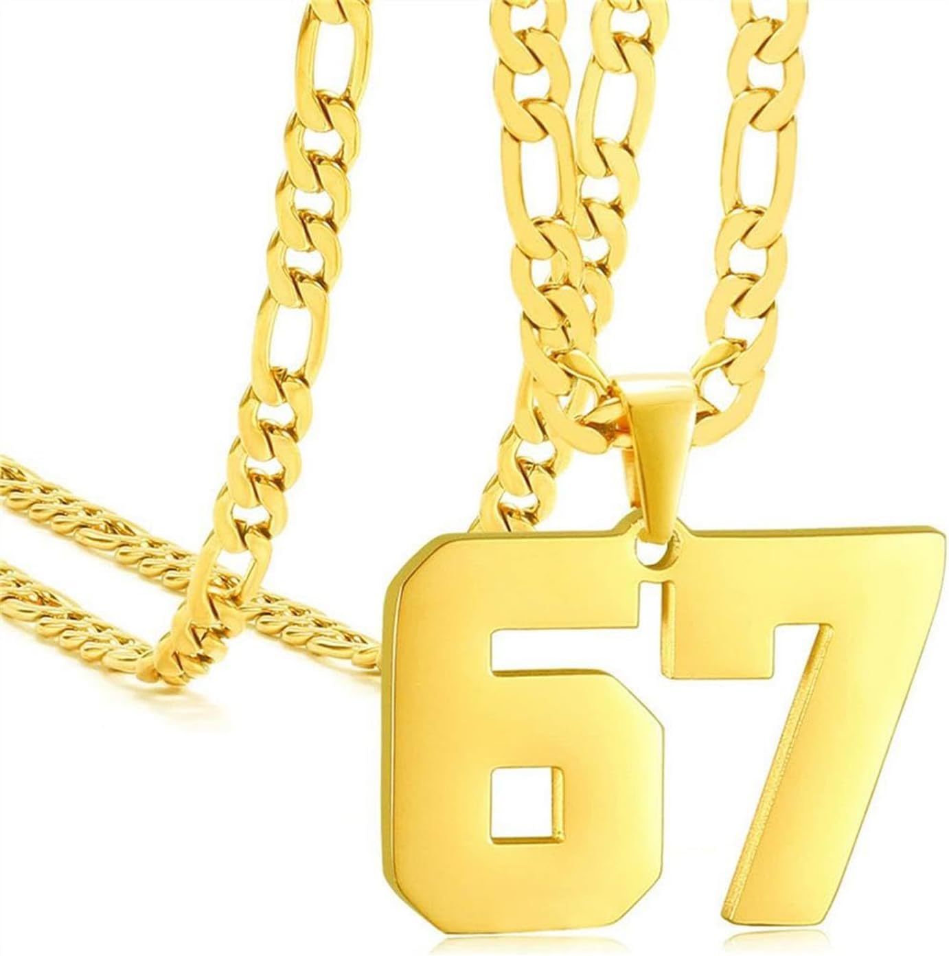 Number 67 Necklace,Football Baseball Basketball Personalized Sports Star Stainless Steel Gold Digital Pendant Men's Necklace, Sports Trend Commemorative Lucky Number 67 Jewelry Gift