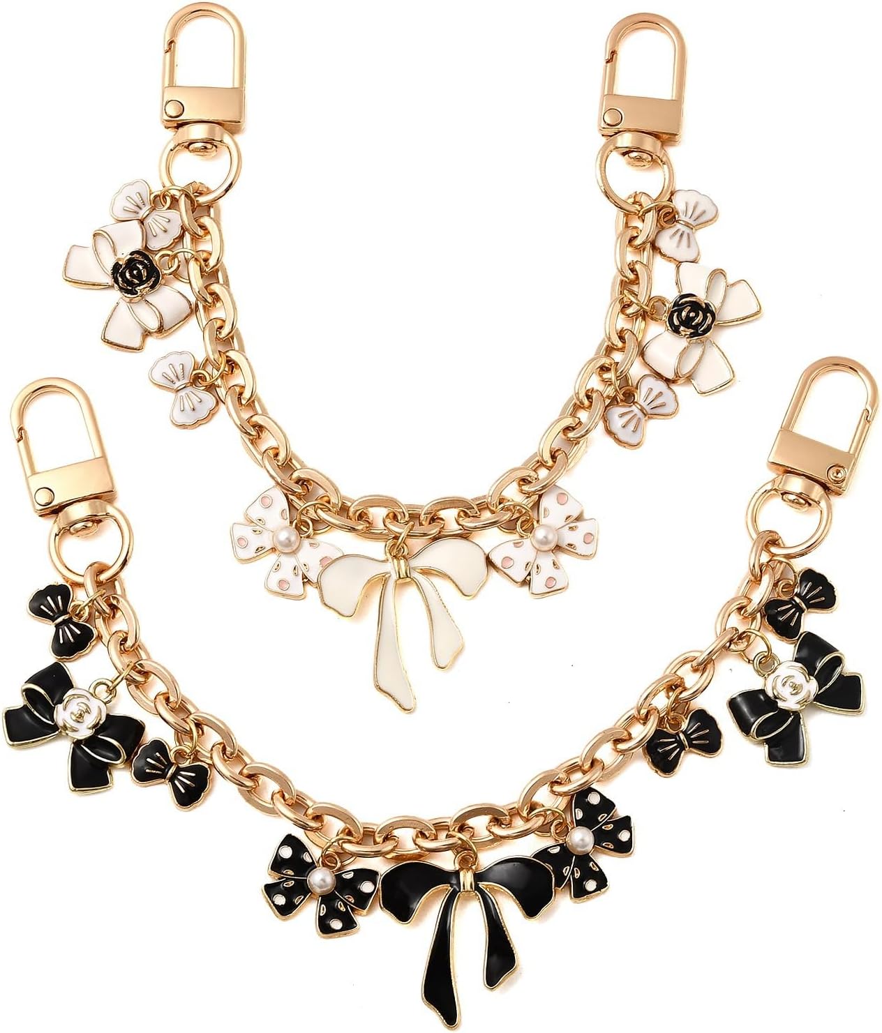 - Style: 2pcs bow purse chain adopts vintage bowknot and flower elements, with black, white, and gold color matching. The delicate designs of bows, flowers, and pearls exude an elegant and retro fashion sense, making your accessories unique and stylish