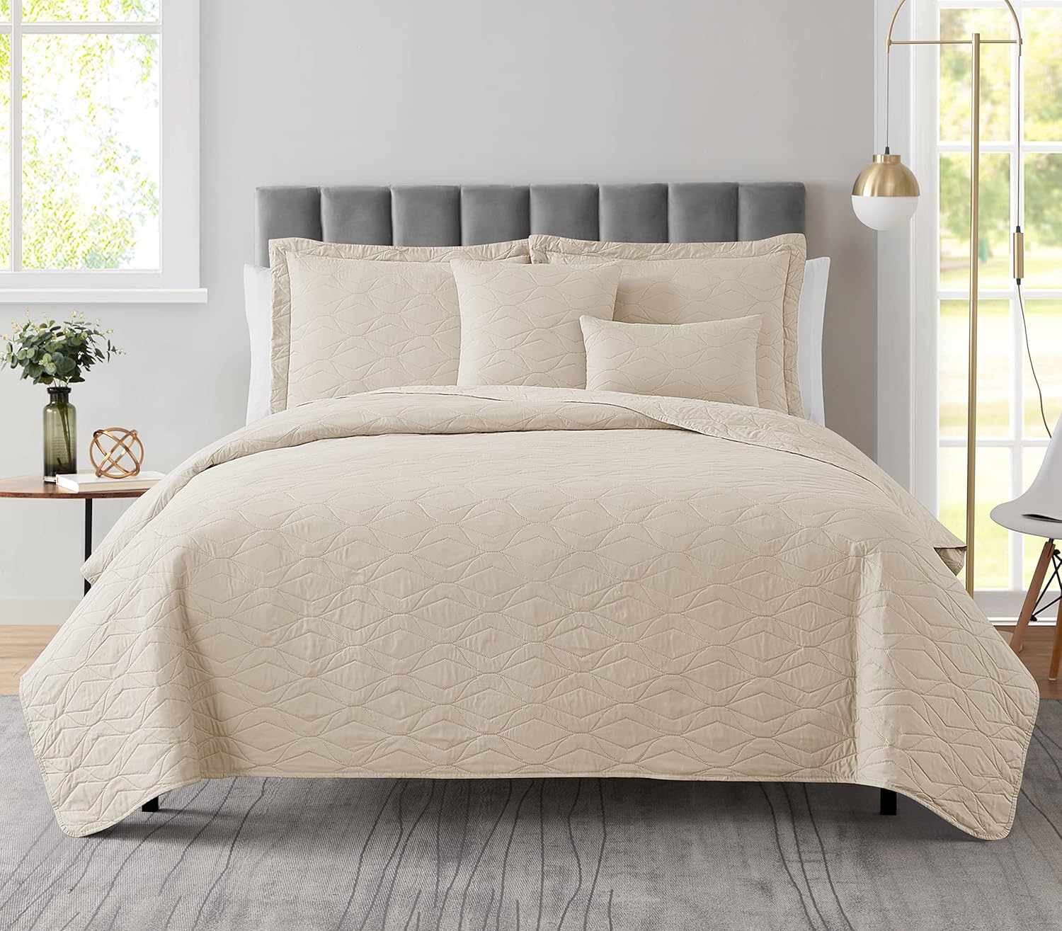 - Lightweight Quilt Set: Embossed with ultrasonic technology, this elegant bedding set is lightweight, breathable and cool to the touch.