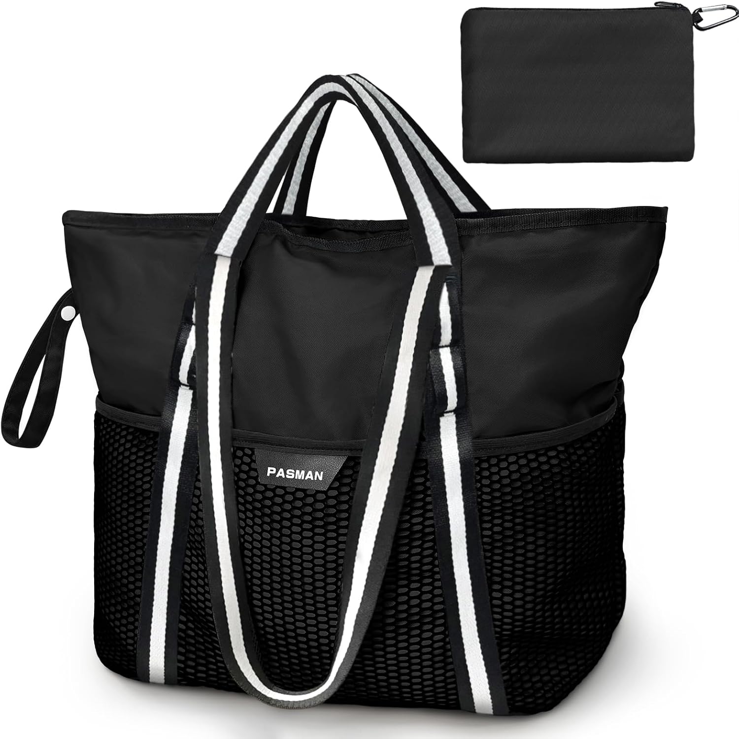 Large Beach Bag with Zipper-8 Pockets Sandproof Beach Tote Bag for Women,Foldable Lightweight Family Swim Bag Vacation