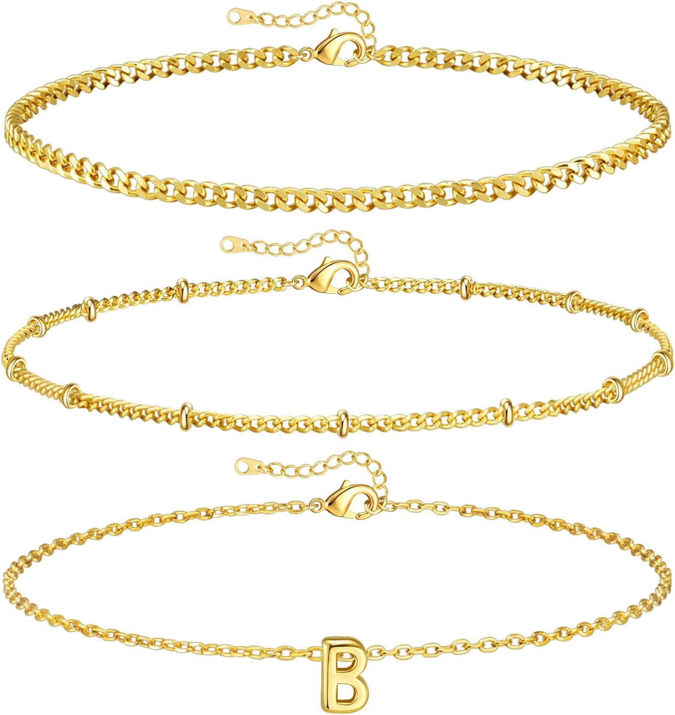 Gold Initial Bracelets for Women Dainty Gold Bracelet Stack 14K Gold Plated Bracelet Sets Cute Letter A-Z Monogram Bracelet Non Tarnish Jewelry Gifts for Women
