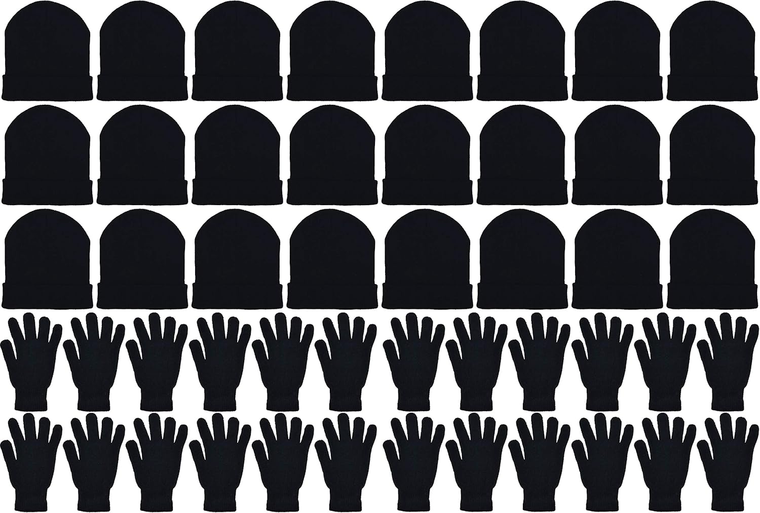 48x Winter Beanies & Gloves Combo Pack, Bulk Pack for Men Women, Warm Cozy Gift