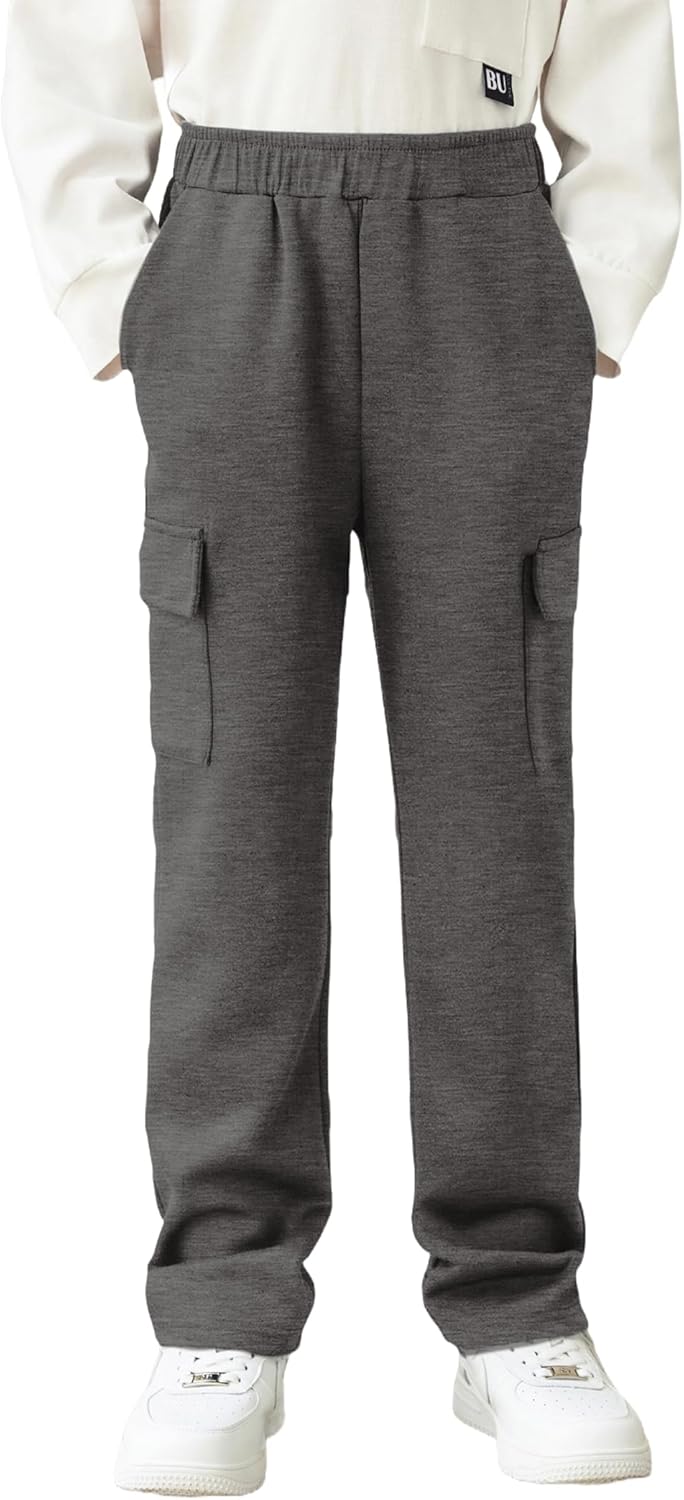 Arshiner Boys Cargo Pants Kids Elastic Waist Casual Athletic Jogger Sweatpants Open Bottom Baggy Pants with Pockets