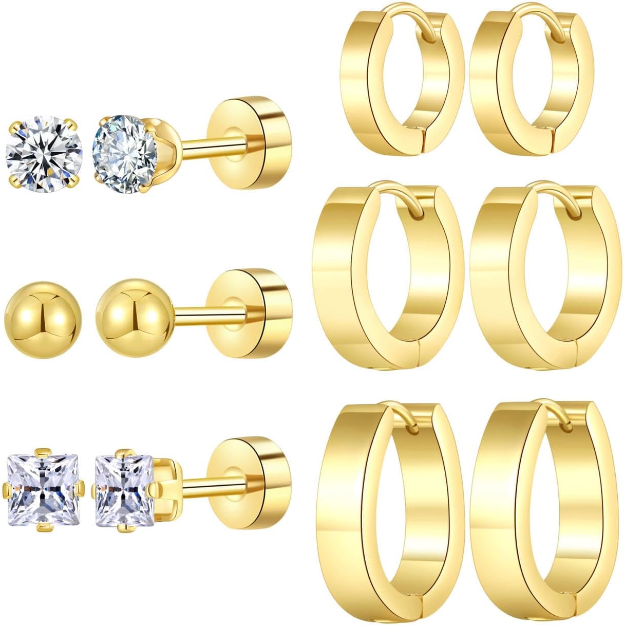 6 Pairs Gold Plated Hoop Flatback Stud Earring Set