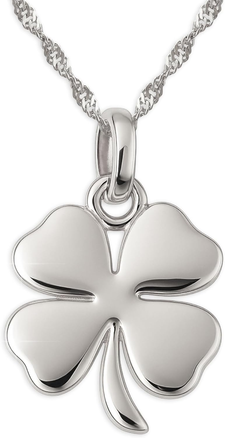 925 Sterling Silver Four Leaf Clover Necklace - Rhodium Plated Shining Mirror Finish Shamrock Pendant with 20" Inch Chain - Good Luck Charm - Irish Jewelry for Women - Handmade