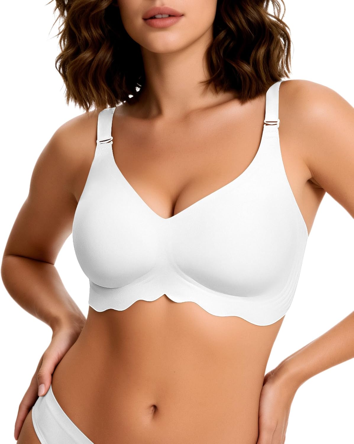 HORISUN Wireless T Shirt Bra Seamless Push Up Bralette Full Coverage V Neck Comfortable Bras for Women