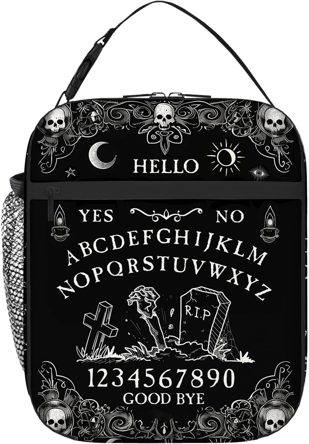 Goth Ouija Board Lunch Box, Gothic Halloween Skull Witchy Horror Lunch Bag for Kids Women Men, Black and White Spooky Insulated Thermal Cooler Lunchbox Meal Tote Bag for School Work