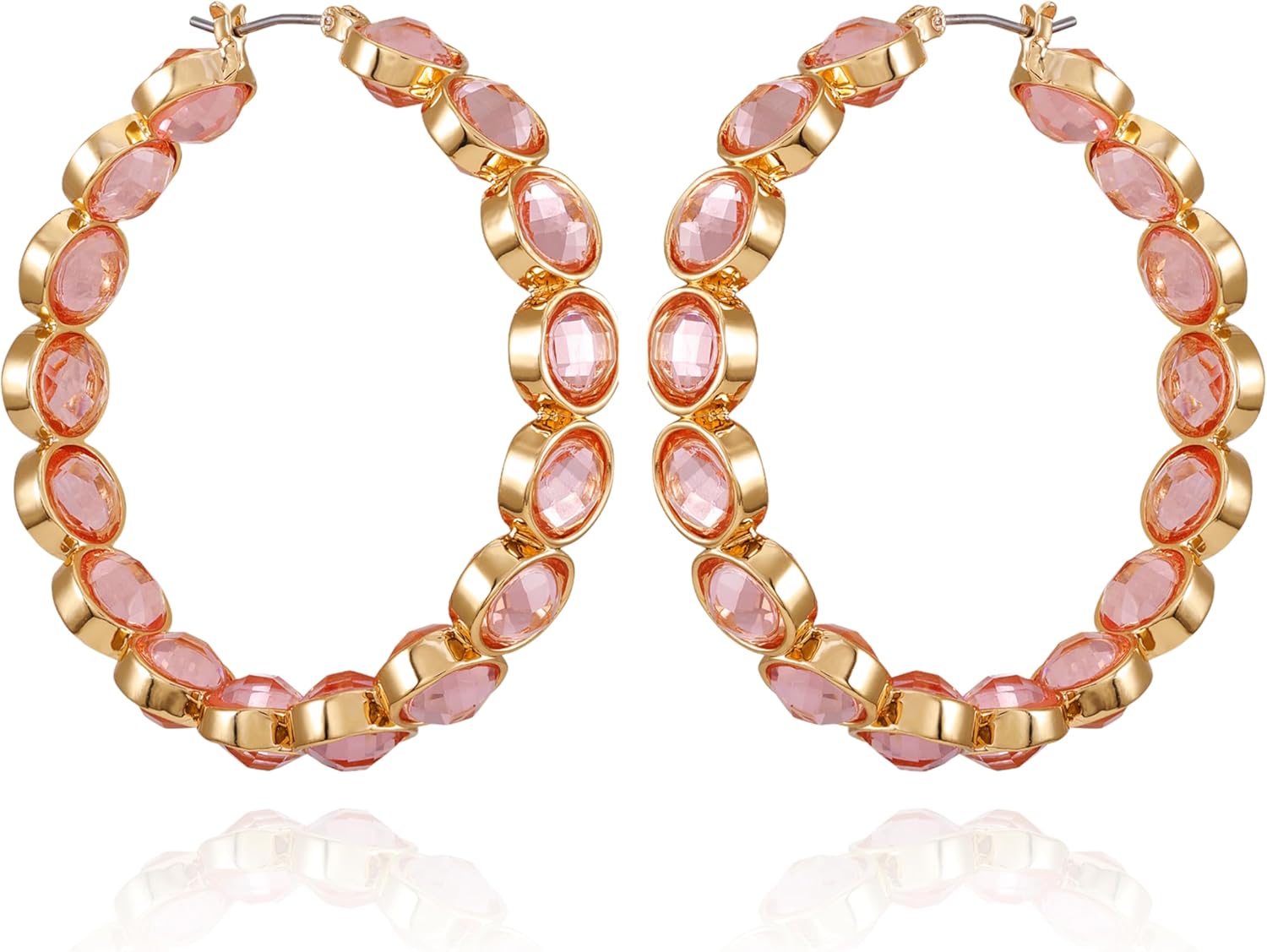 GUESS Goldtone Light Pink Crystal Glass Stone Hoop Earrings