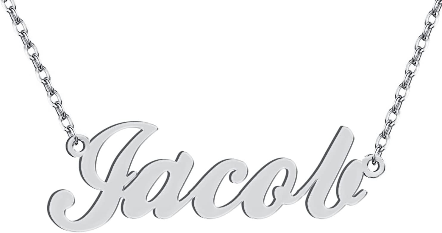 Dancing Wolf Silver Jacob Name Necklace Initial Charm Nameplate Necklaces for Womens Birthday Friendship Jewelry Stainless Steel