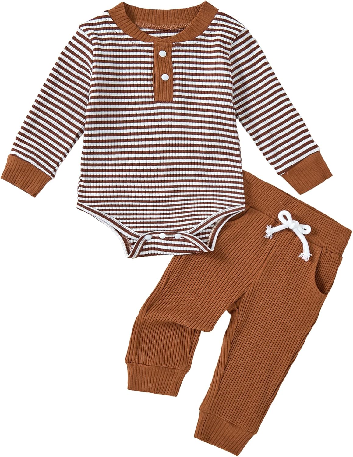 Newborn Baby Boy Clothes Ribbed Knit Long Sleeve Romper and Pants Set Fall Winter Baby Boy Outfits