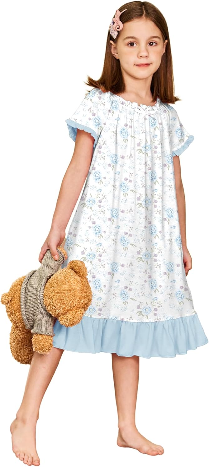 Arshiner Girls Nightgowns Sleepwear Short Sleeve Victorian Pajama Dress Soft Princess Sleepshirt for 3-12 Years Kids